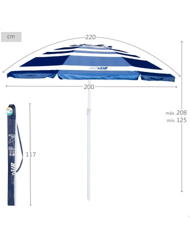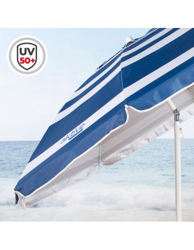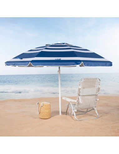 Σκέφτεστε να αντικαταστήσετε αυτή την φθαρμένη ομπρέλα που πάντα φυσάει όταν πηγαίνετε στην παραλία; Αυτό συμβαίνει πιο συχνά από το συνηθισμένο, και στο τέλος, περνάτε περισσότερο χρόνο τρέχοντας πίσω της ή κρατώντας την παρά απολαμβάνοντας μια ευχάριστη μέρα στην παραλία. Επομένως, για να κάνετε την επόμενη απόδρασή σας στην παραλία όσο το δυνατόν πιο ικανοποιητική, σας προτείνουμε να επιλέξετε αντιανεμικές ομπρέλες όπως αυτή ακριβώς μπροστά σας. Μια μεγάλη ομπρέλα θαλάσσης σχεδιασμένη με κορυφαίο αερισμό, έτσι ώστε τις μέρες με αέρα, ο αέρας να περνάει από το εσωτερικό και να βγαίνει από την οροφή χωρίς να τον φυσάει. Έχει επίσης μια ασημένια εσωτερική επίστρωση και αντηλιακή προστασία UV50 που βοηθά στη μείωση της θερμοκρασίας κάτω από την ομπρέλα. Μια ιδανική αντιανεμική ομπρέλα για αυτό το καλοκαίρι!