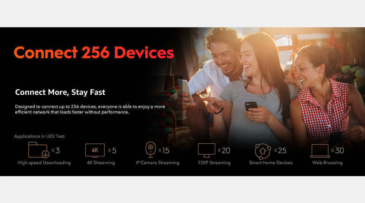 Σχεδιασμένο για τη σύνδεση έως και 256 συσκευών, όλοι μπορούν να απολαμβάνουν ένα πιο αποδοτικό δίκτυο που φορτώνει ταχύτερα, χωρίς επιδόσεις.