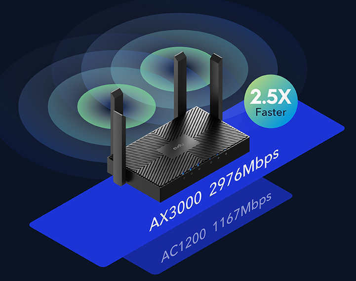 Εξοπλισμένο με Wi-Fi 6, το WR3000 διαθέτει το υψηλότερο εύρος ζώνης 160 MHz και 1024-QAM για να φτάσει σε ταχύτητες έως και 3 Gbps, που είναι πάνω από 2,5 φορές ταχύτερες από τον τελευταίας γενιάς δρομολογητή WiFi AC 2x2.