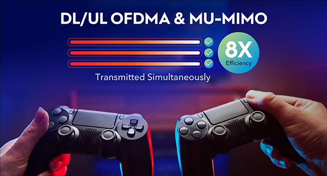 Το αναβαθμισμένο πρότυπο Wi-Fi 6 διαθέτει MU-MIMO και OFDMA για κατερχόμενη και ανερχόμενη ζεύξη, παρέχοντας έως και 8X (2,4 GHz) έως 16X (5 GHz) μεγαλύτερη χωρητικότητα δικτύου για να ανταποκρίνεται καλύτερα σε συνθήκες έντονης χρήσης.