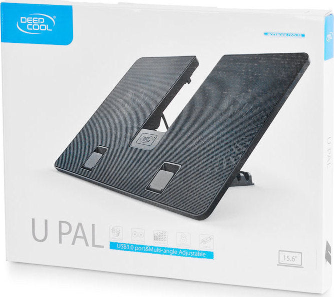 Βάση ψύξης U-PAL της Deepcool για laptop έως 15.6". Διαθέτει μεταλλικό πλέγμα για καλύτερη ψύξη και σύνδεση με καλώδιο USB 3.0 pass-through, το οποίο αφήνει ελεύθερη την θύρα USB του laptop, για γρήγορη μεταφορά δεδομένων.