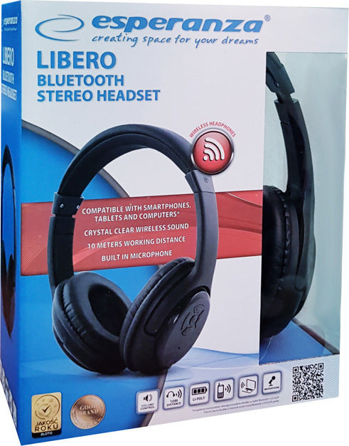 Esperanza EH163 Libero Ασύρματα Bluetooth On Ear Ακουστικά με 4 ώρες Λειτουργίας Μαύρα