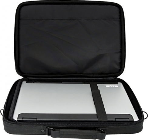 Στυλάτη τσάντα μεταφοράς για laptop έως 17" (μεταβαλλόμενο λουρί για ακριβή ρύθμιση ανάλογα με το μέγεθος της συσκευής) από υλικά υψηλής ποιότητας. Τα πλαϊνά τοιχώματα είναι ενισχυμένα με μέταλλο και επίστρωση αφρώδους υλικού για αυξημένη προστασία από χτυπηματα και γρατζουνιές. Στο μπροστά μέρος θα βρείτε μια λειτουργική θήκη εγγράφων. Στο εσωτερικό υπάρχει μια επιπλέον θήκη εγγράφων, καθώς και μια επιπλέον ζώνη συγκράτησης ενός ακόμα laptop. Η ρυθμιζόμενη ζώνη ώμου είναι προσδεδεμένη σε μεταλλικές θηλιές για επιπλέον αντοχή.