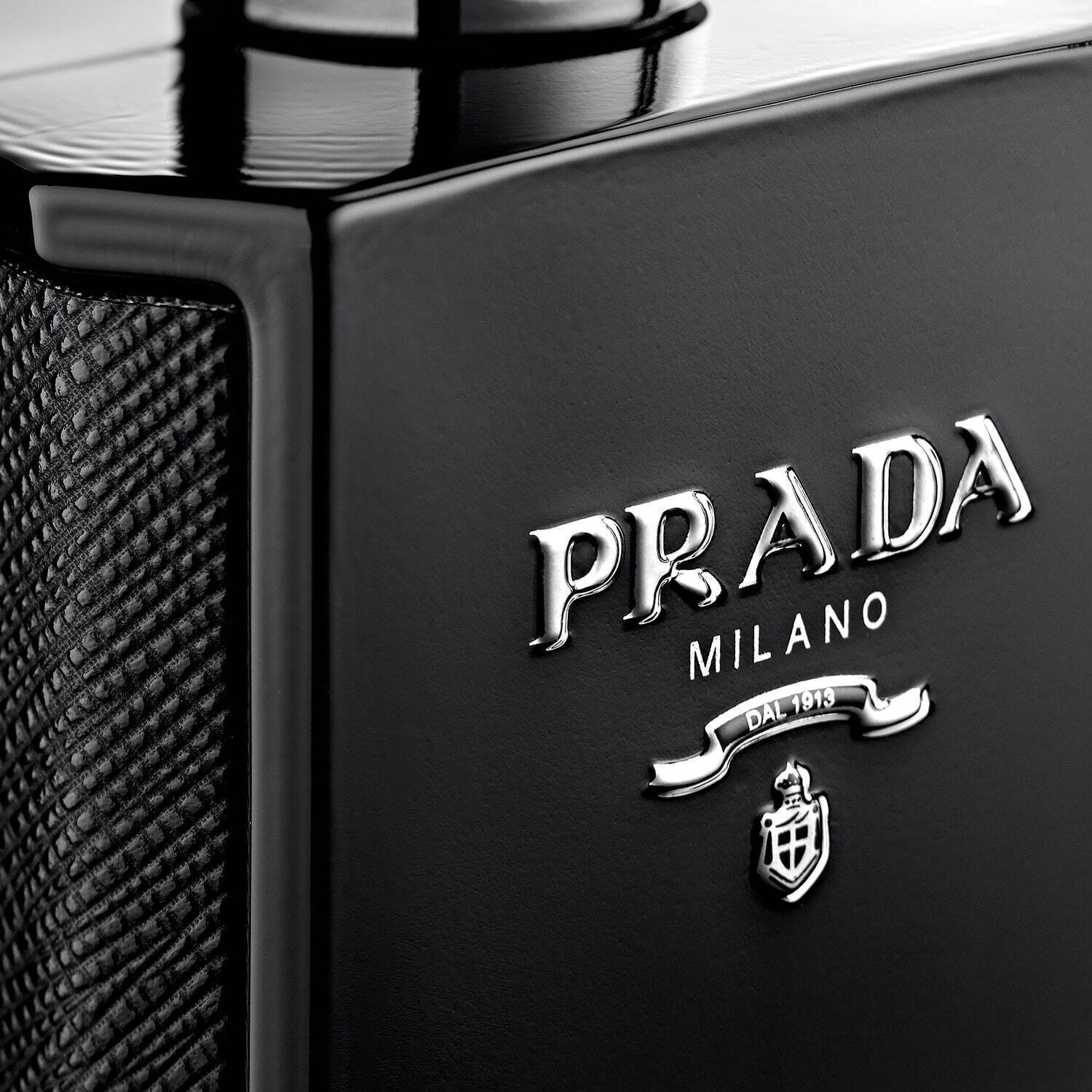 Το μπουκάλι L’Homme Prada Intense έχει ντυθεί με εμβληματικό δέρμα Prada Saffiano σε μαύρο χρώμα. Την όψη του μπουκαλιού από μαύρη λάκα κοσμεί ένα ανάγλυφο λογότυπο της Prada σε ασημί χρώμα.