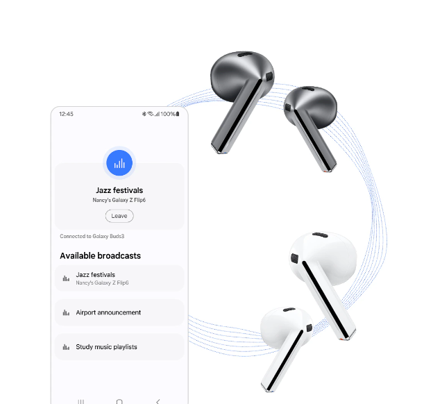 Με την τεχνολογία μετάδοσης Auracast, μπορείτε να μοιραστείτε τη ροή ήχου σας με μεγάλο αριθμό συμβατών συσκευών. Μετατρέψτε εύκολα τη συμβατή Samsung TV, το συμβατό Samsung Galaxy smartphone ή tablet σε ραδιοφωνική πηγή και αρχίστε να αλληλεπιδράτε με τους άλλους.