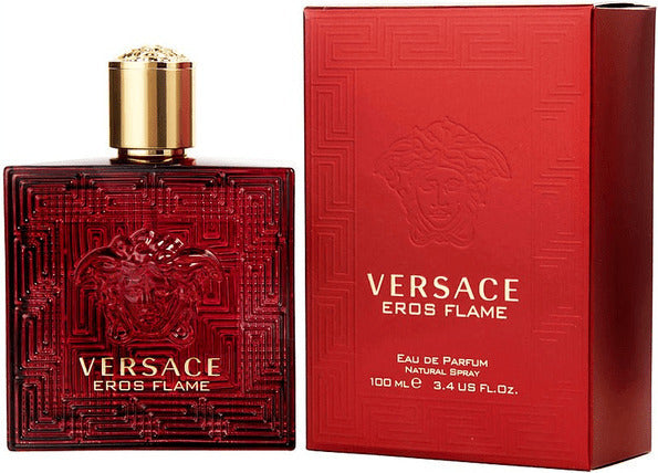 Η σύνθεση του Versace Eros Flame ξεχωρίζει για τις έντονες αντιθέσεις της. Η εισαγωγή ανήκει στις ιδιαίτερα ζωντανές νότες ζουμερών ιταλικών φρούτων όπως το λεμόνι, το μανταρίνι και το πικρό πορτοκάλι. Θερμαίνουν στη συνέχεια τις συγχορδίες μαύρου πιπεριού της Μαδαγασκάρης και αρωματικού δεντρολίβανου μαζί με γεράνι, τριαντάφυλλο και ξύλο πιπεριού. Οι νότες βάσης του αρώματος δημιουργούνται με πολύτιμες νότες κέδρου του Τέξας και βετιβέρ Αϊτής, αλλά και με βρύα δρυός, πατσουλί, σανταλόξυλο και φασόλια τόνκα, που συνδυάζονται υπέροχα με τη γλυκιά βανίλια.